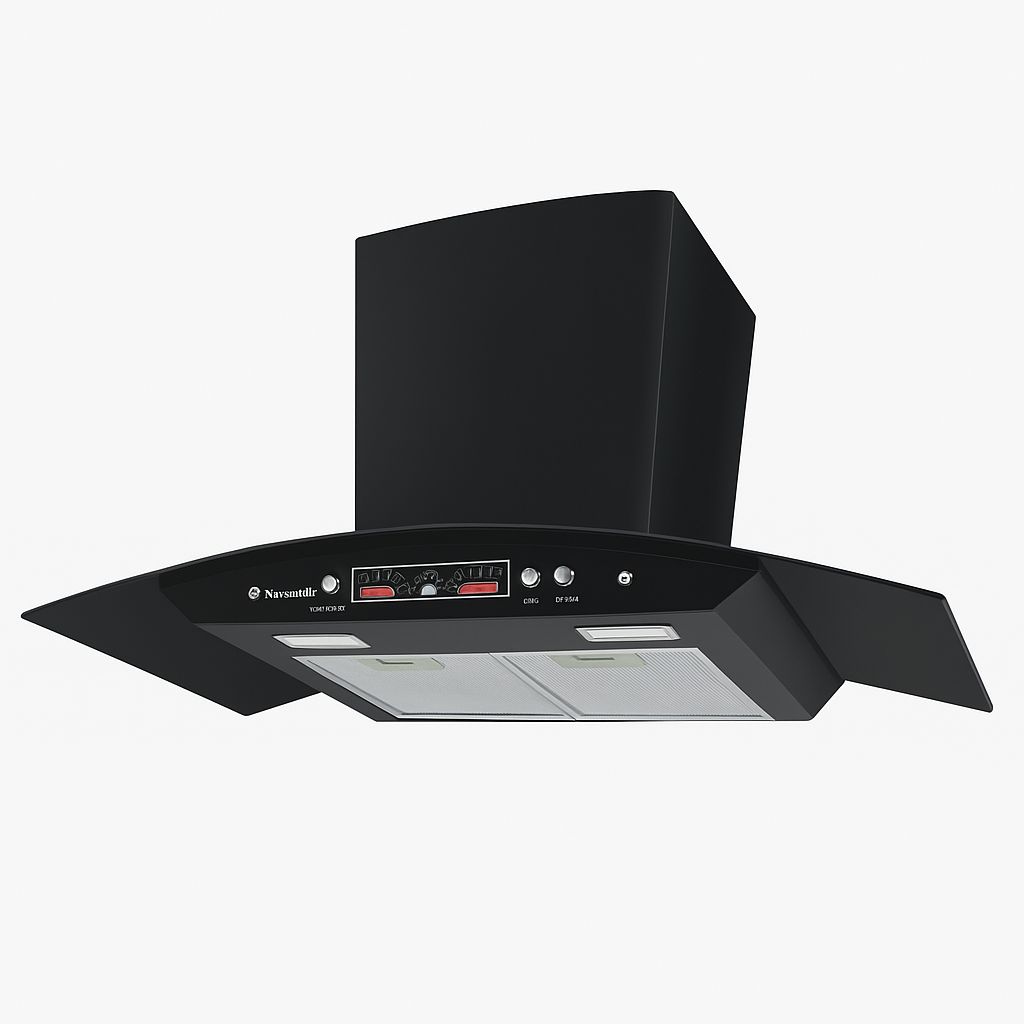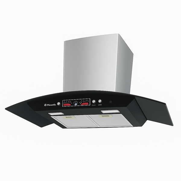 Sleek and powerful, this modern kitchen hood features a black glass panel with touch and gesture control for effortless use. Its 1000 m³/h suction and Heat Auto Clean system clear smoke fast, while triple baffle filters, a copper motor, and energy-saving LED lighting ensure quiet, long-lasting performance.